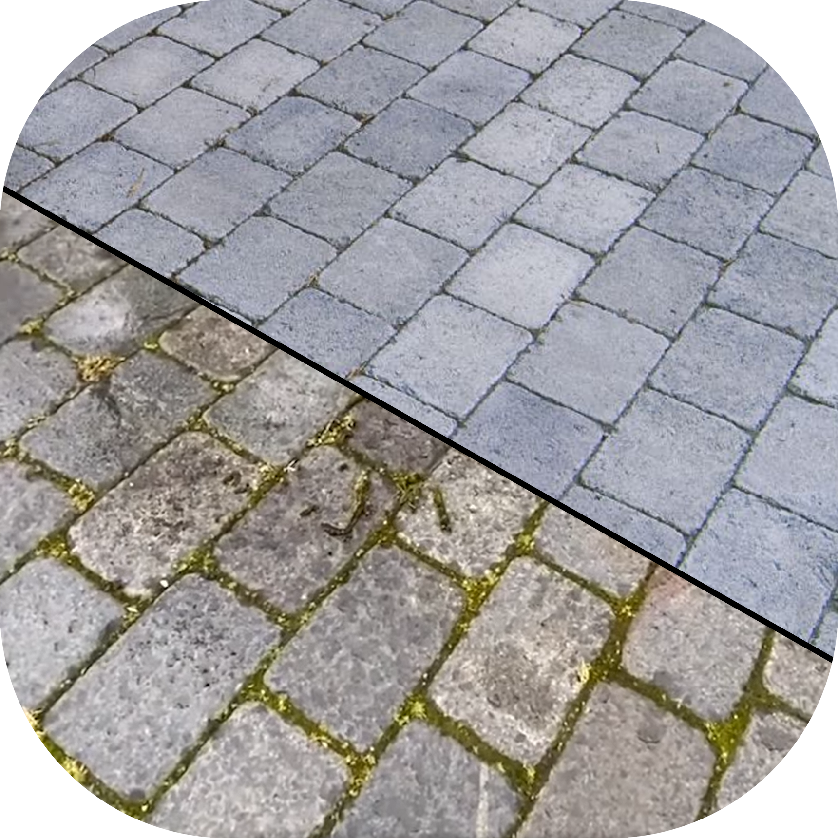 Vi tilpasser trykket og bruker kun skånsomme, nedbrytbare midler når vi renser belegningsstein, mur, tegl og naturstein. Mose og alger spyles vekk, fargene kommer tilbake, og du slipper kostbar utskifting.